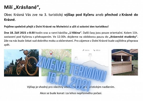 Obec Krásná Vás zve na 3. turistický výšlap pod Kyčeru aneb přechod z Krásné do Krásné.