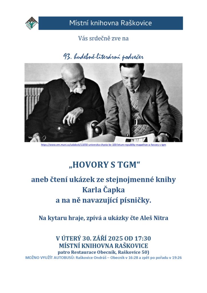 Zpět na Hudebně-literární podvečer na téma „Hovory s TGM“ – Místní knihovna Raškovice Od Obecní úřad Krásná Publikováno 2025-09-16 Původní velikost je 1241 × 1755 pixelů