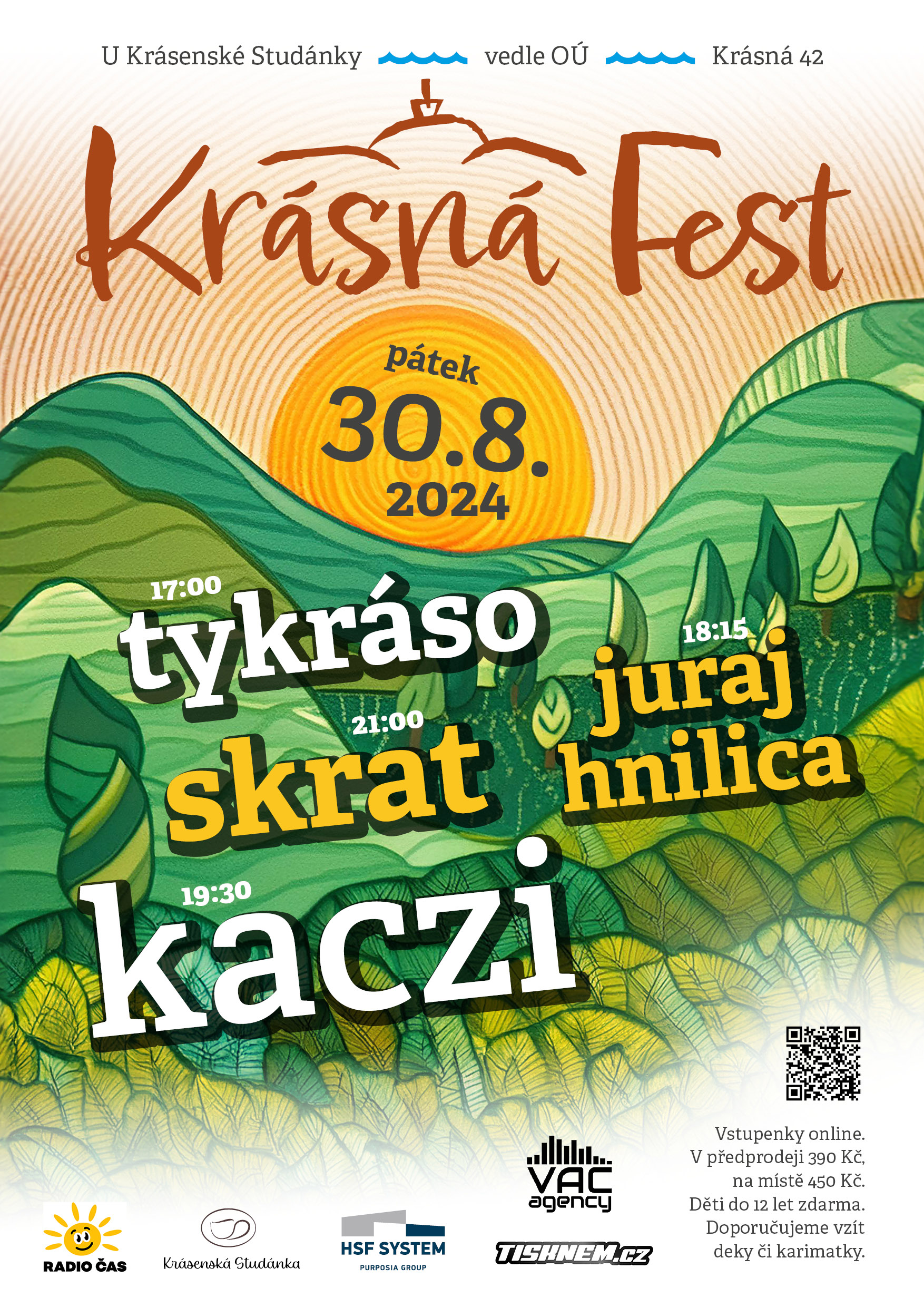 V pátek 30.8.2024 se u Krásenské Studánky koná Krásná Fest. Využijte ještě prázdniny a přijďte si užít letní pohodu.