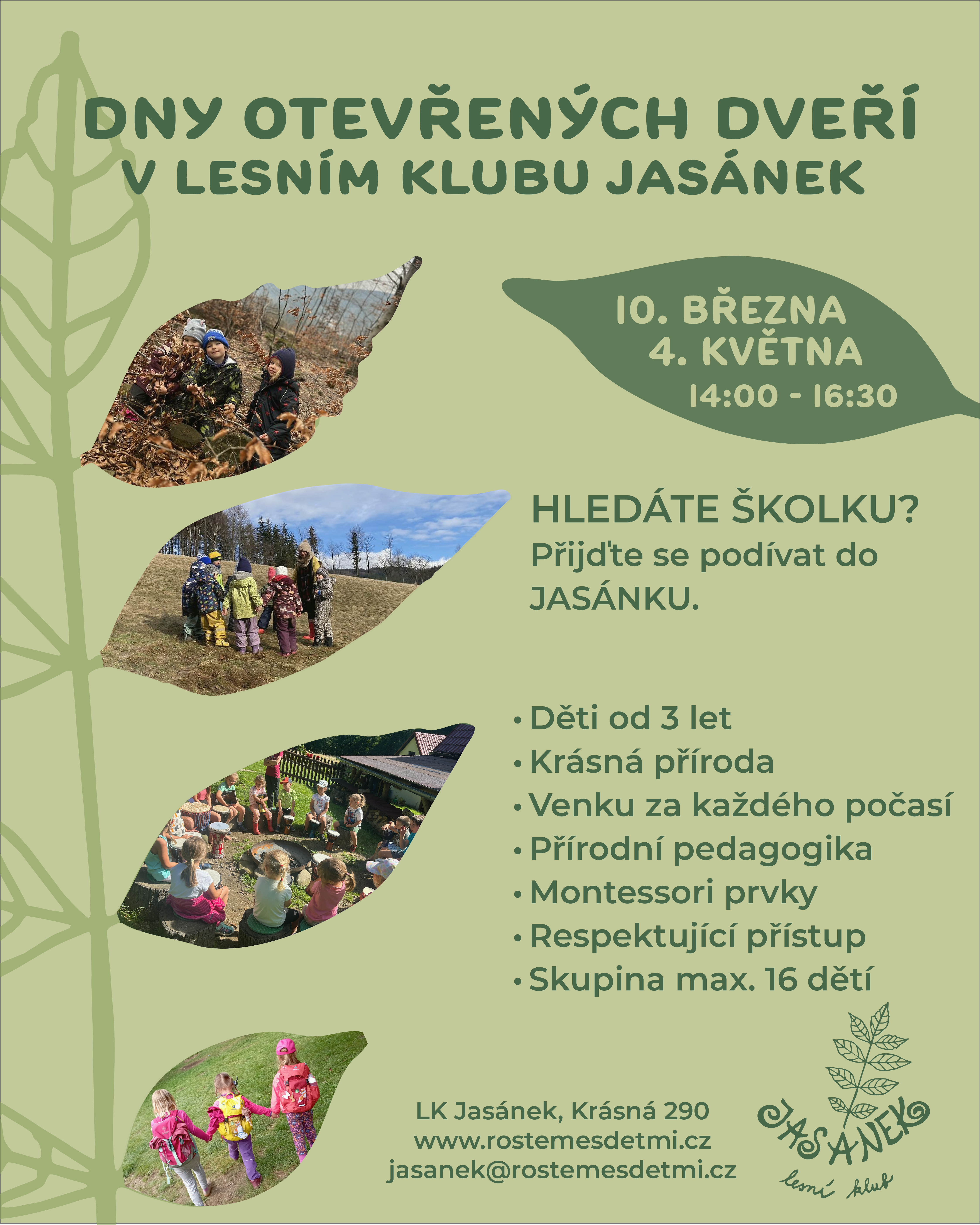 Hledáte školku nebo příměstský tábor pro své ratolesti? Lesní klub Jasánek nabízí volná místa.🍀 Více informací naleznete v přiložených letáčcích.