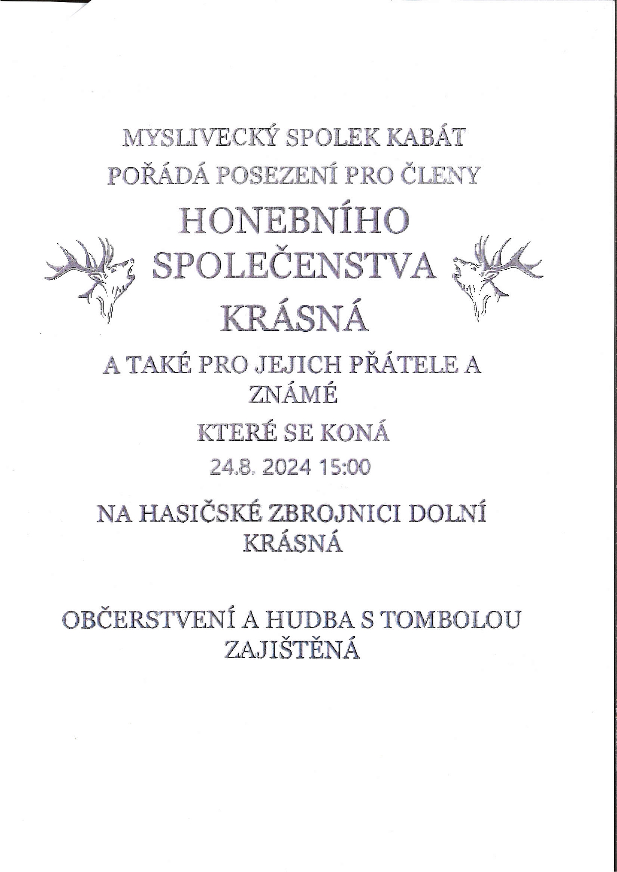 Posezení se koná v hasičské zbrojnici na Dolní Krásné od 15 hodin. Čeká Vás hudba s tombolou a bohaté občerstvení.