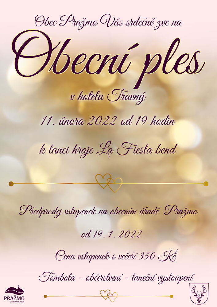 Obec Pražmo Vás srdečně zve na Obecní ples v hotelu Travný.