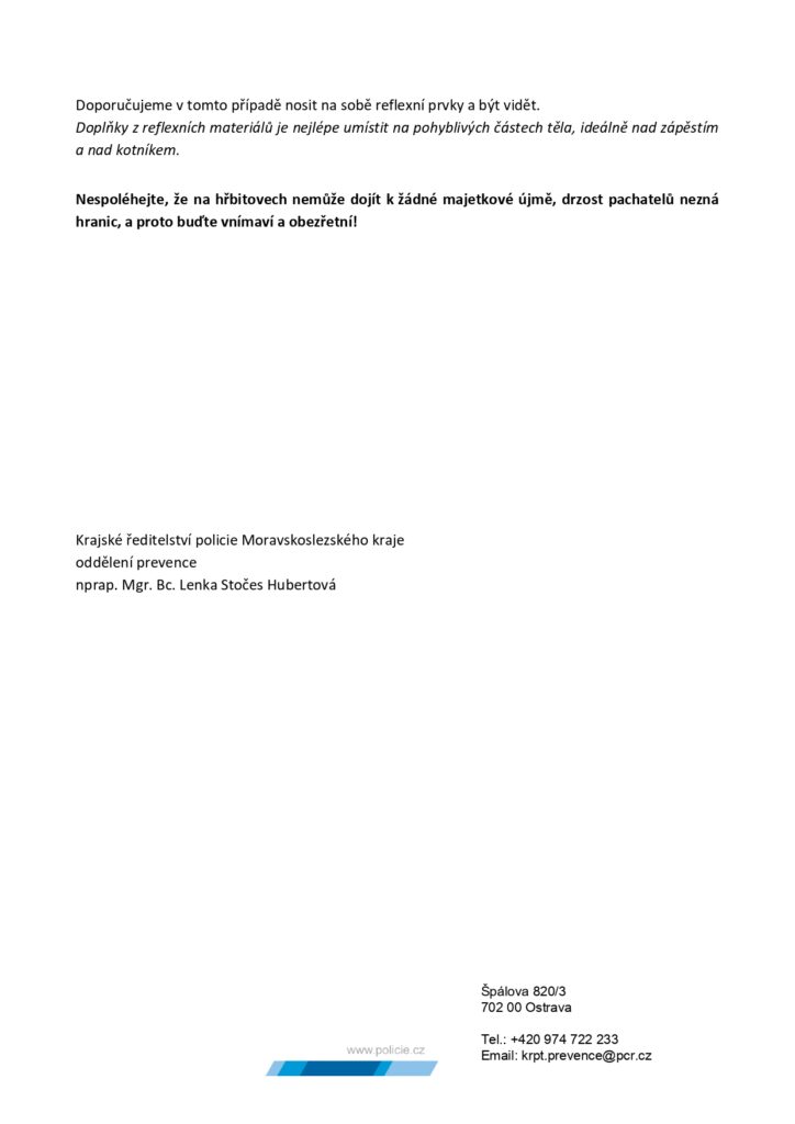 Zpět na Památka zesnulých – Policie ČR nabádá k ostražitosti