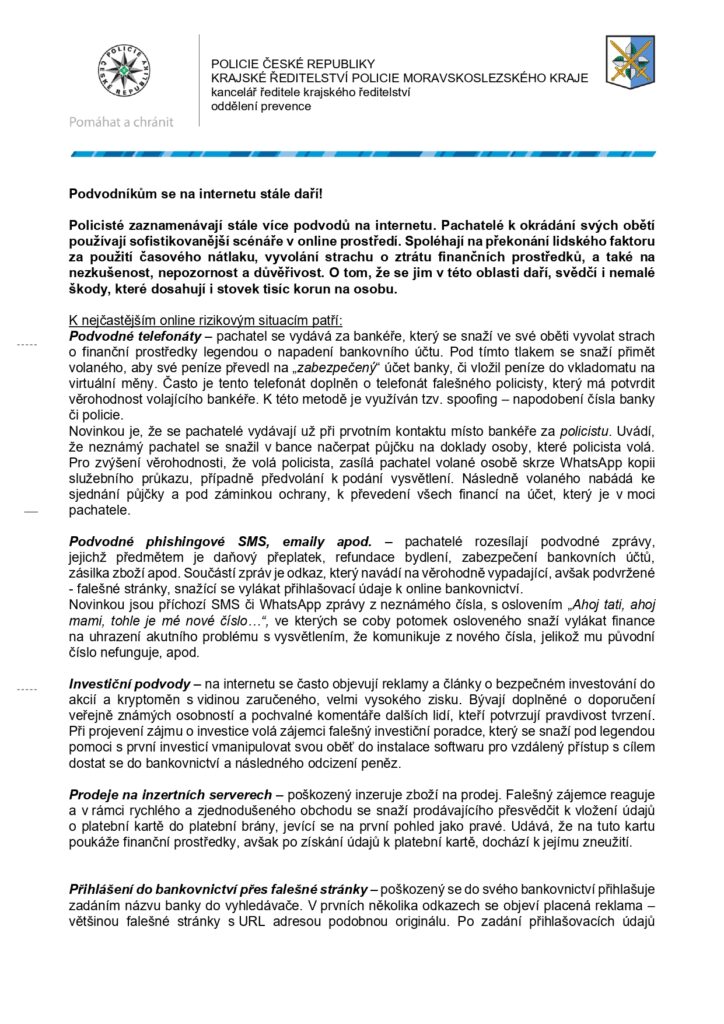 Zpět na Policie ČR varuje: Podvodníkům se na internetu stále daří!