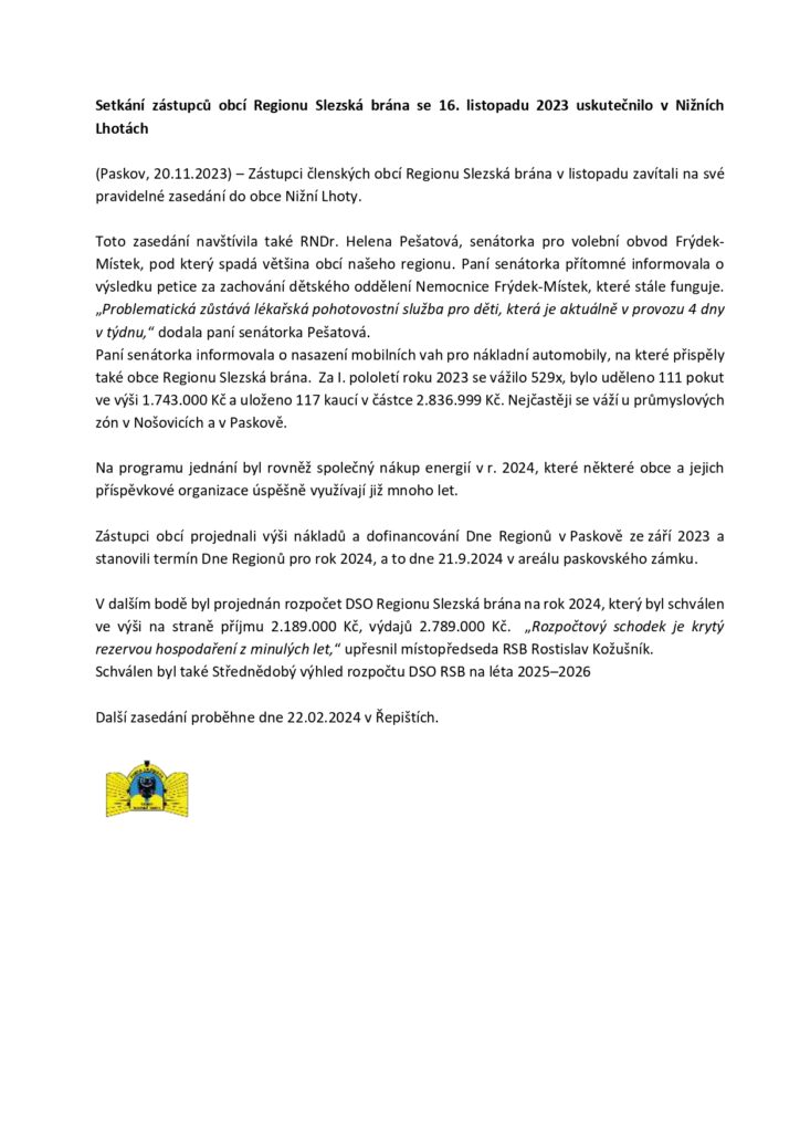 Zpět na Setkání zástupců obcí Regionu Slezská brána 16. listopadu 2023 v Nižních Lhotách Od Obecní úřad Krásná Publikováno 2024-03-05 Původní velikost je 1240 × 1755 pixelů