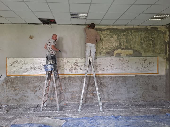 Při rekonstrukci sálu v budově OÚ Krásná byla pod strženým dřevěným obložením objevena částečně zachovalá nástěnná malba, která určitě pochází z dob, kdy úřad býval školou a sál školní třídou. Malířům se podařilo „obraz“ do jisté míry zrestaurovat, nicméně v zachovalých částech se nenalézá žádný rok vzniku ani žádné jméno autora. Letmé vzpomínky jedné z bývalých žaček školy nasvědčují prozatím tomu, že se jedná o dílo minimálně z přelomu 60. a 70. let 20. století, může však být ještě mnohem starší.