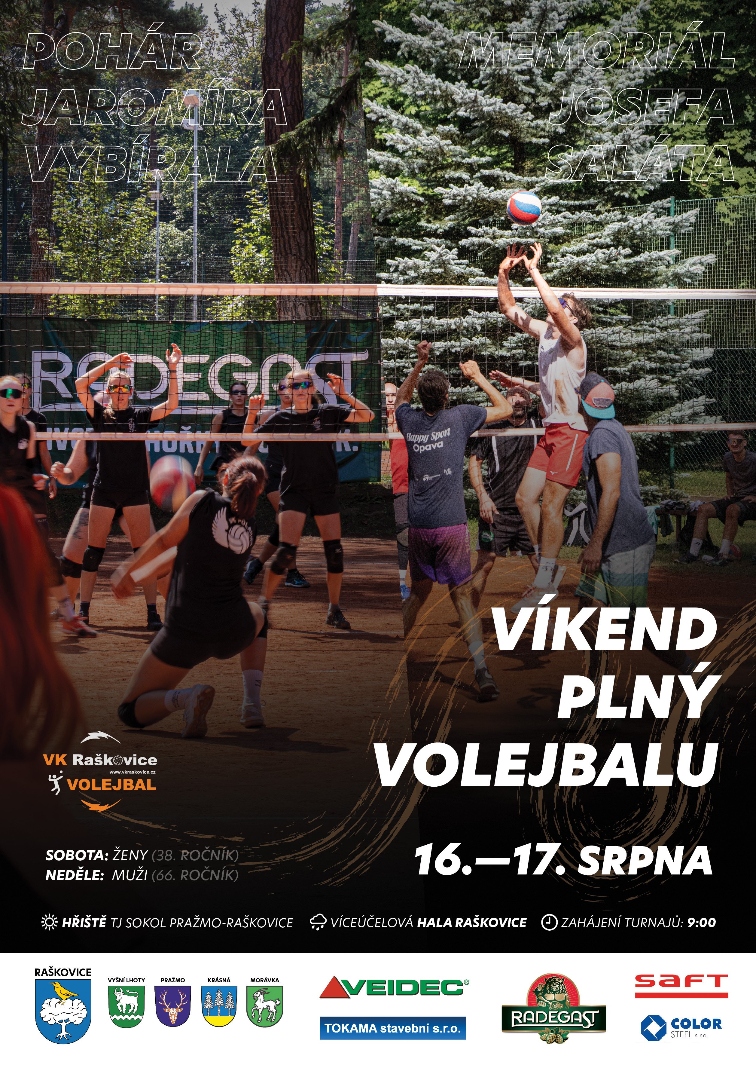 Volejbalový klub Raškovice zve všechny příznivce sportu na ,,Víkend plný sportu“, který se bude konat 16.-17. srpna dle počasí na hřišti Tj Sokol Pražmo-Raškovice nebo ve Víceúčelové hale Raškovice.