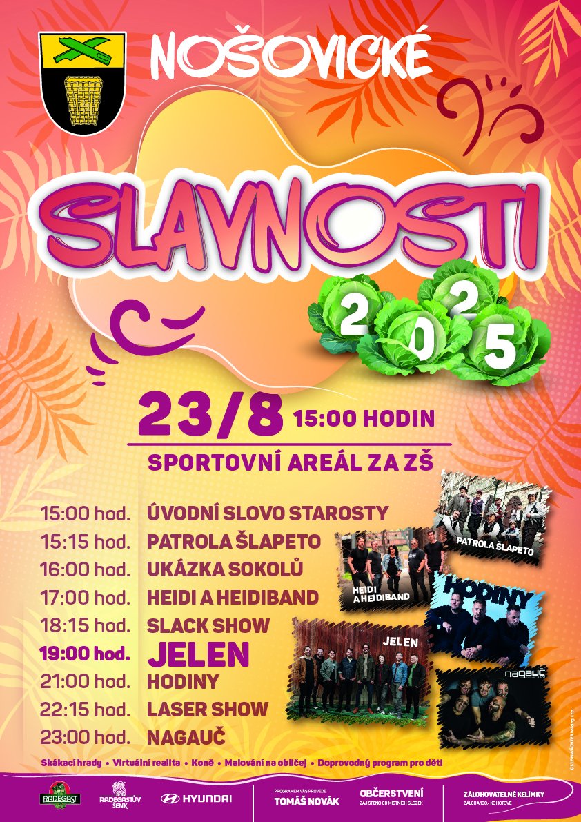 Obec Nošovice Vás srdečně zve na Nošovické slavnosti, které se budou konat 23.8.2025 od 15 hodin ve sportovním areále za základní školou v Nošovicích.