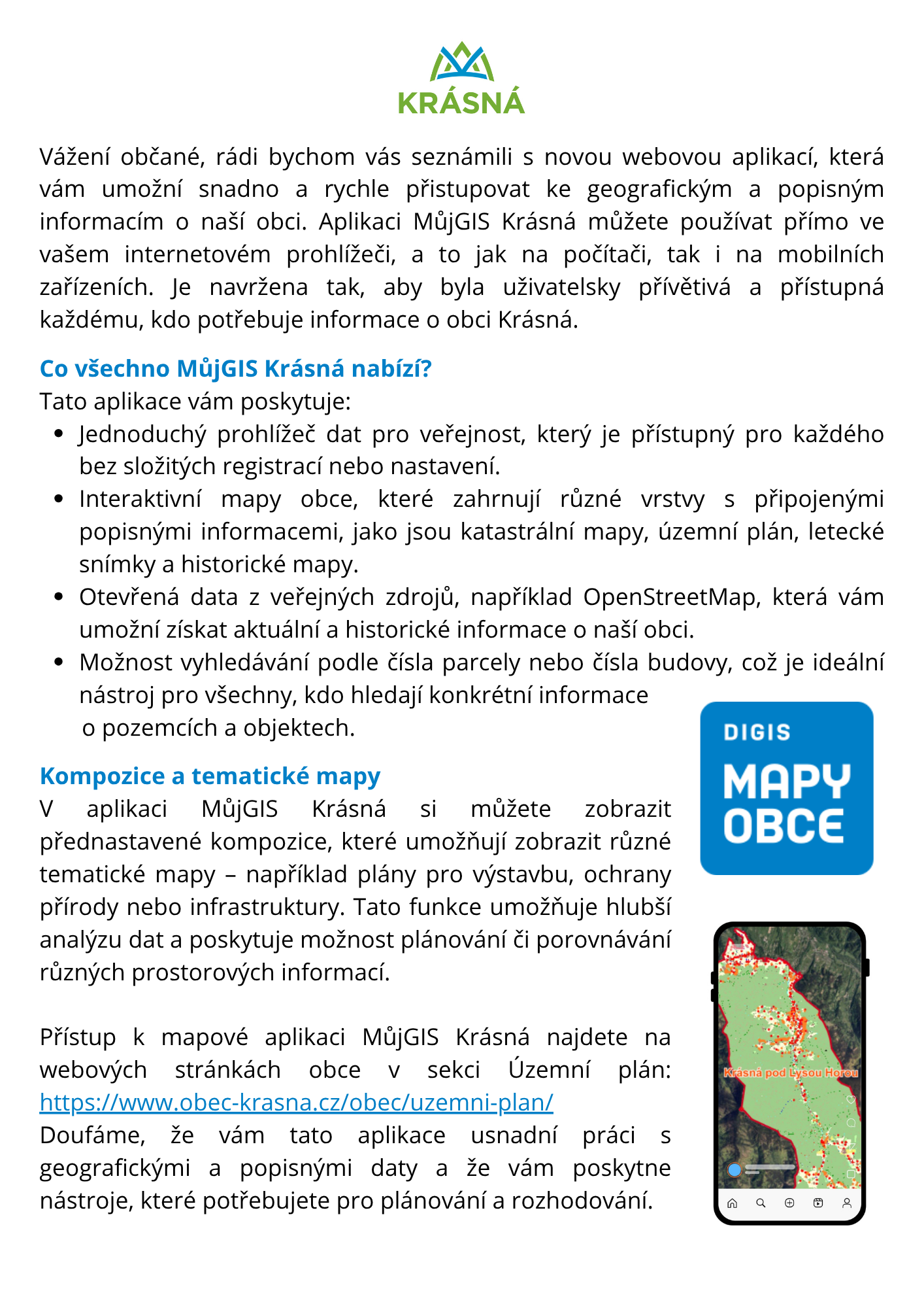 MůjGIS Krásná – mapová aplikace pro veřejnost