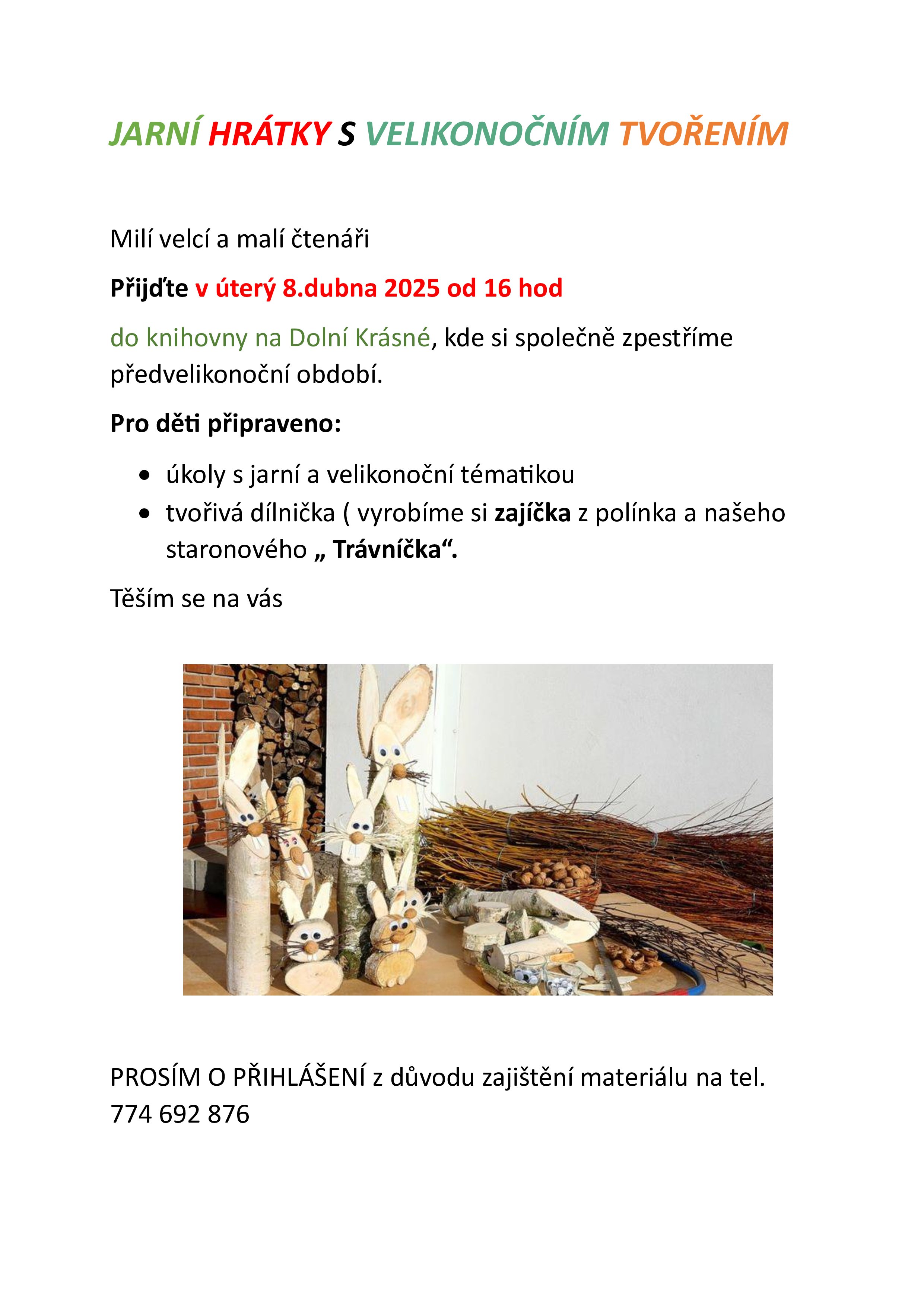 Jarní hrátky s velikonočním tvořením v knihovně na Dolní Krásné