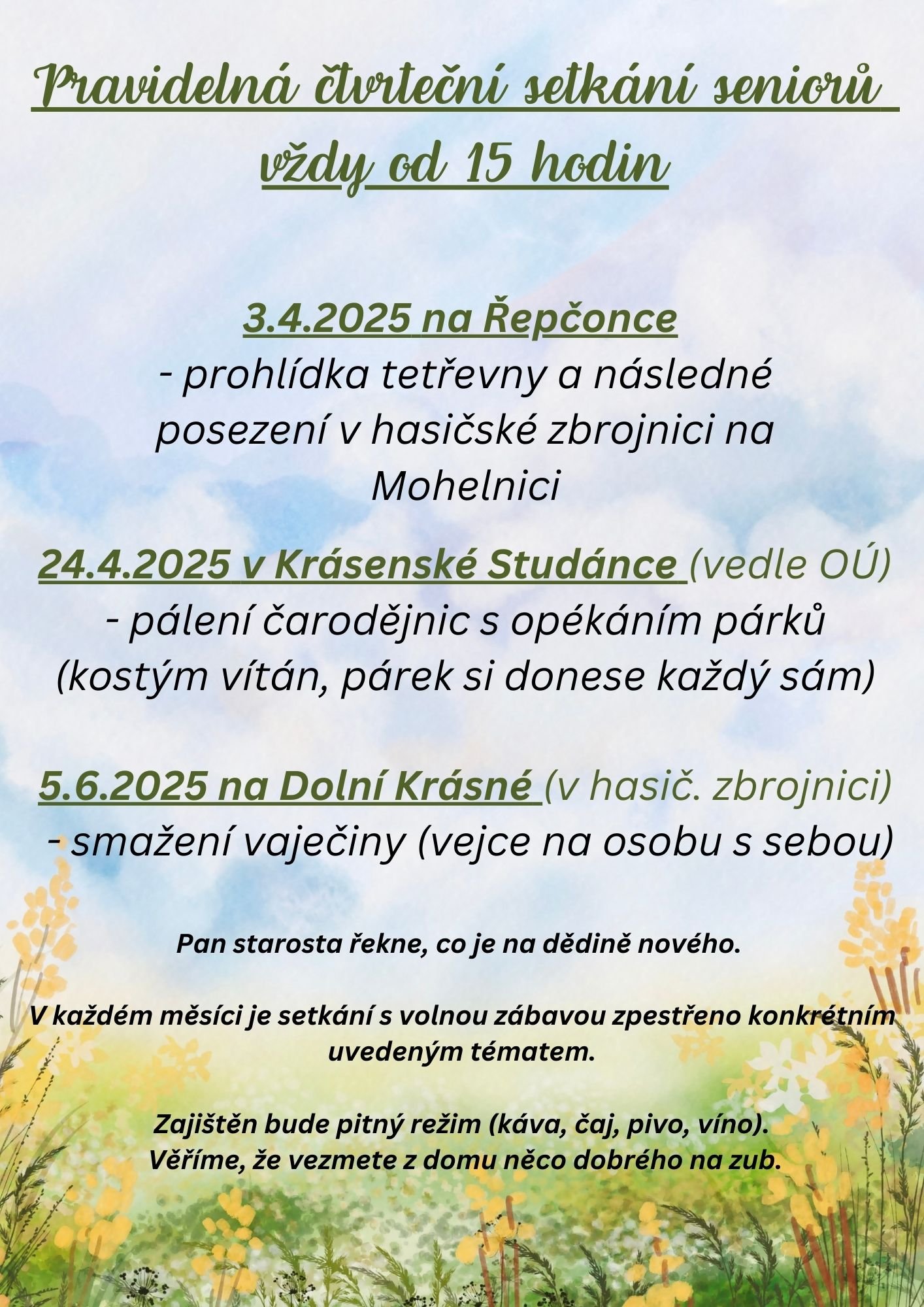 Obec Krásná zve všechny seniory na další z Pravidelných setkání seniorů, která budou opět pestrá.