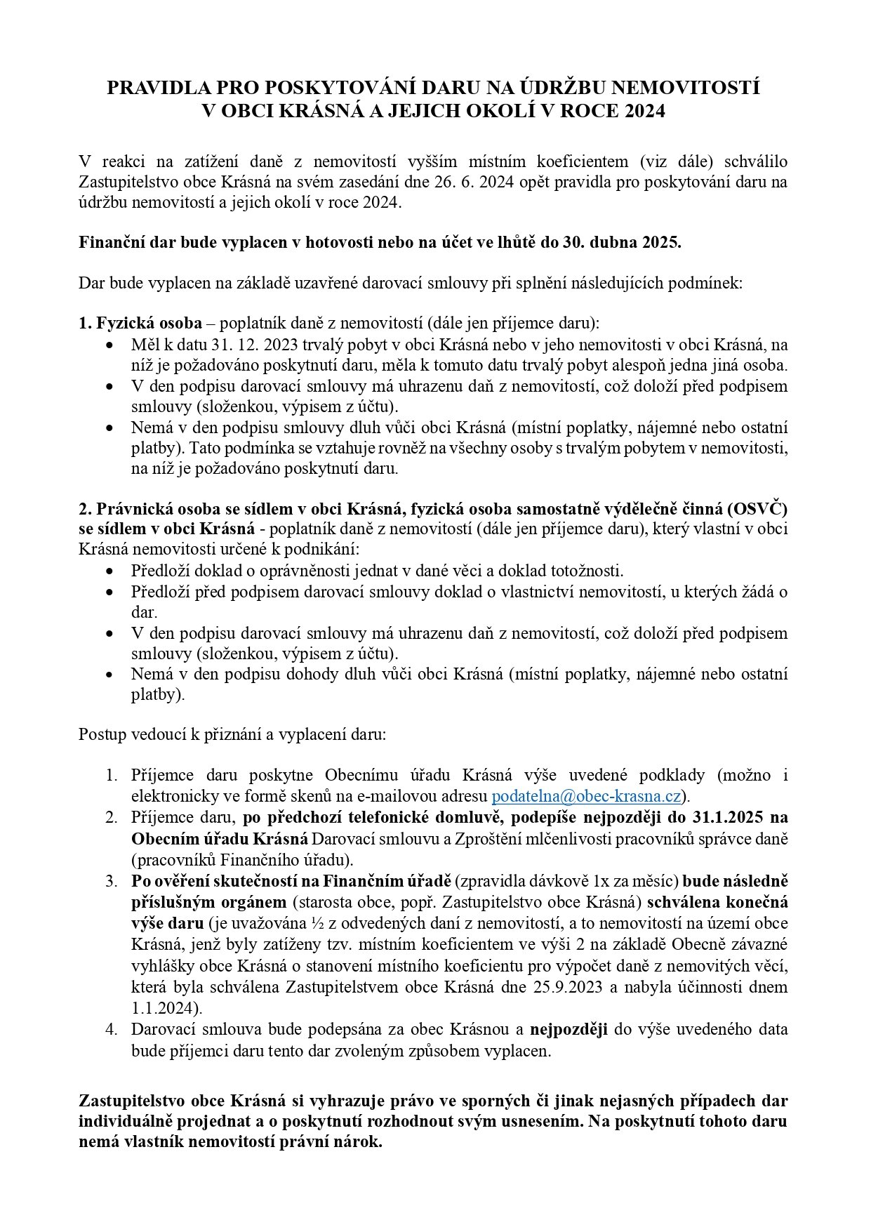 dovolujeme si Vám připomenout, že žádost o Dar na údržbu nemovitostí a jejich okolí v roce 2024 můžete podat nejpozději do 31.1.2025.