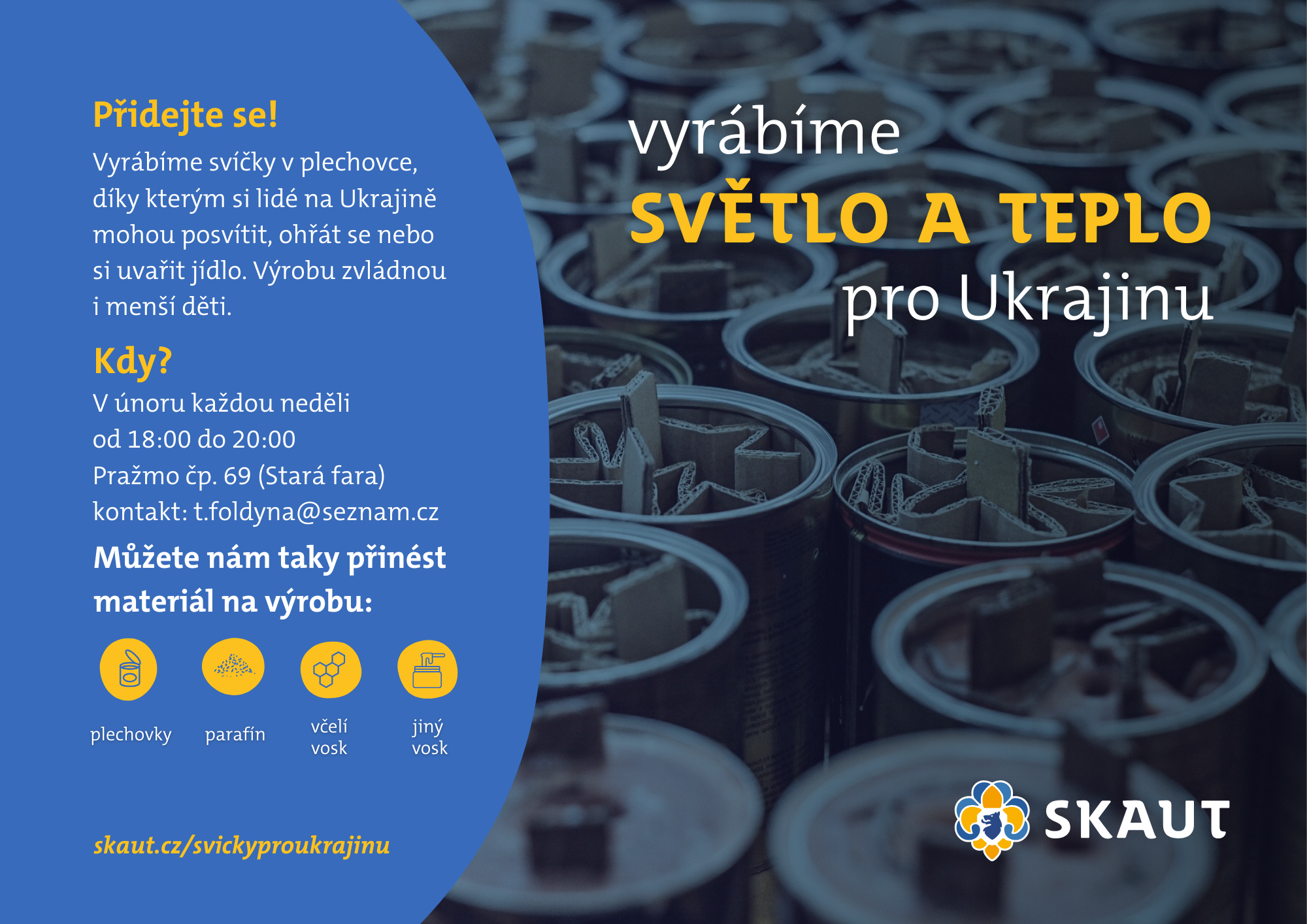 zákopové svíčky pro Ukrajinu můžete odevzdávat skautům nadále i v měsíci březen.