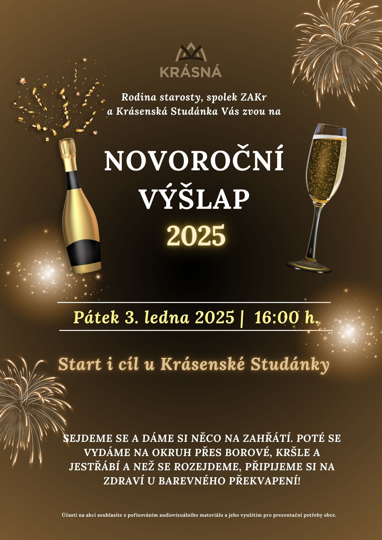 Přijďte s námi oslavit příchod roku 2025 novoročním výšlapem! Startujeme v pátek 3. ledna 2025 v 16 hodin u Krásenské Studánky.