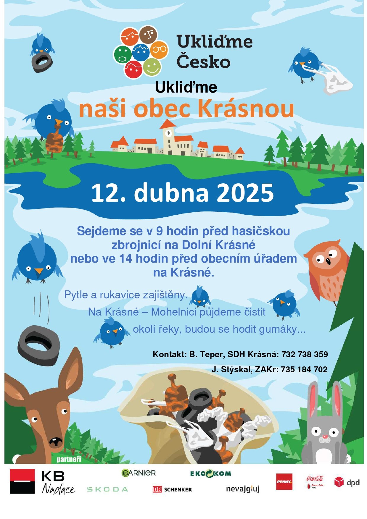 Vážení občané, 12. dubna 2025 proběhne pravidelná úklidová akce Ukliďme Česko, a to jak na Mohelnici, tak na Dolní Krásné. Přijďte se také zapojit a udělat z naší krásné obce Krásná obec ještě krásnější.