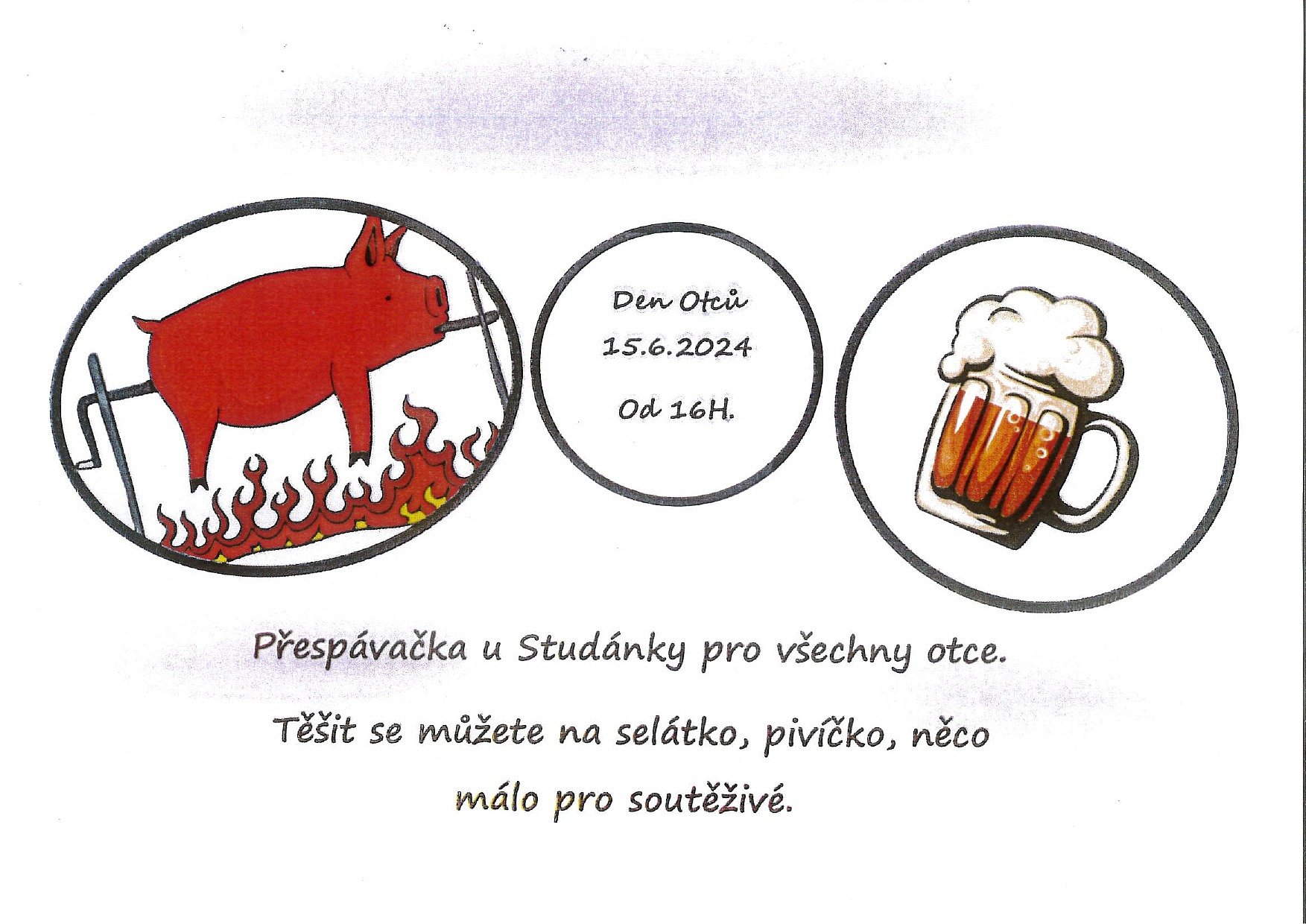 Drazí tatínkové, nezapomeňte, že už tuto sobotu se bude rožnit selátko (a nejen to) při příležitosti Dne otců V režii Krásenské Studánky za podpory obce Krásná.
