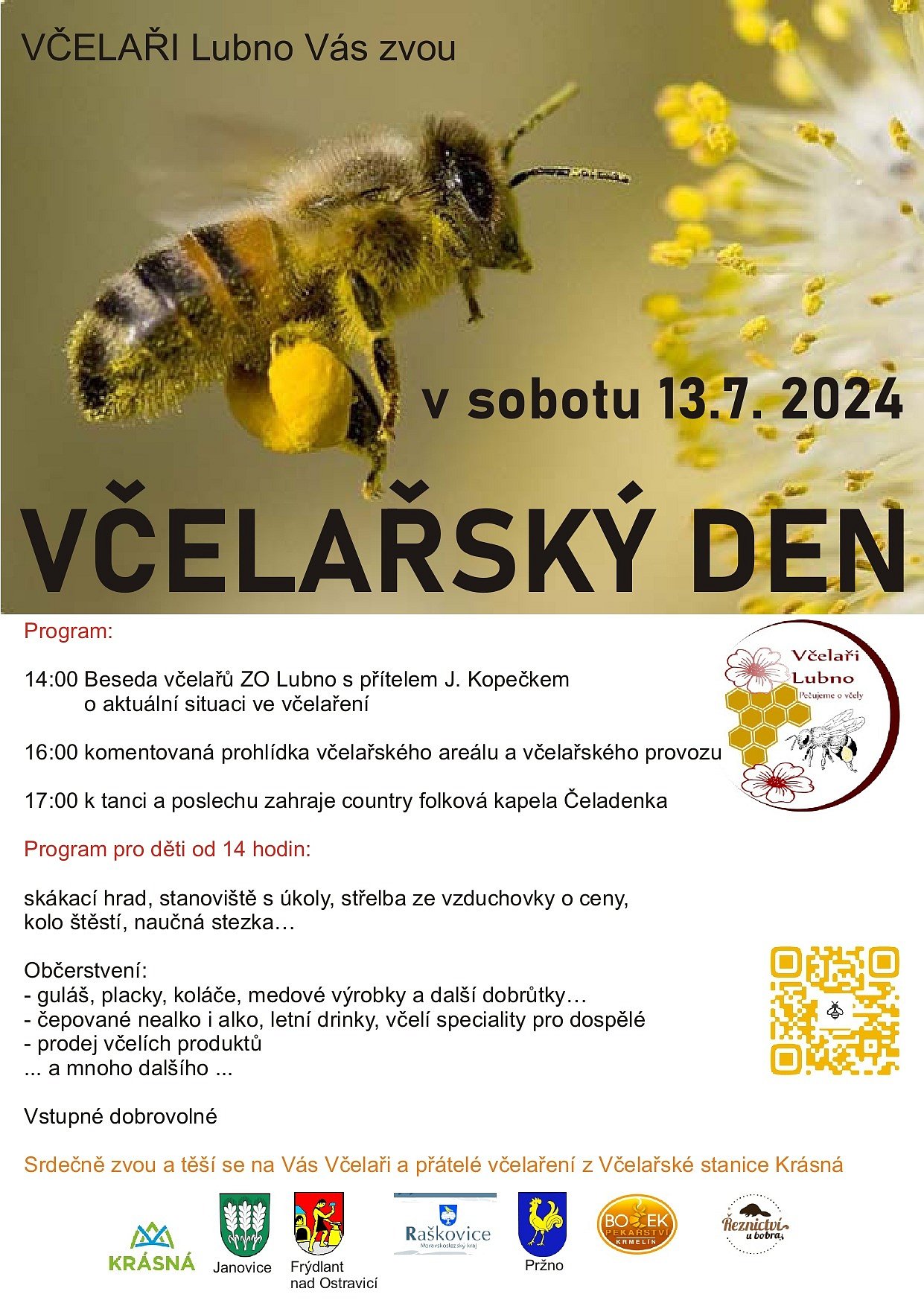 Včelaři Lubno Vás zvou na tradiční Včelařský den, který se koná v sobotu 13.7.2024 od 14 hodin. Čeká Vás rozmanitý program a bohaté občerstvení.