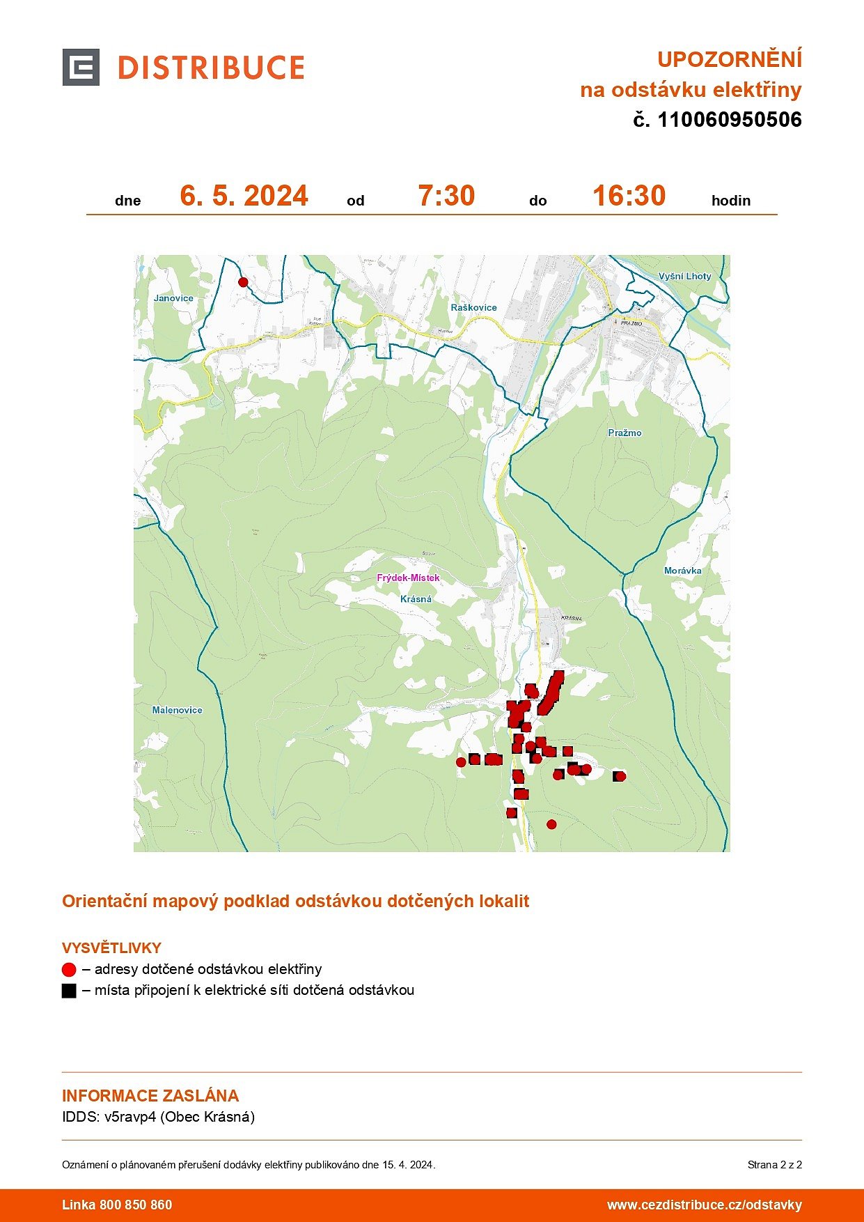 Oznámení o přerušení dodávek elektřiny – 6.5.2024