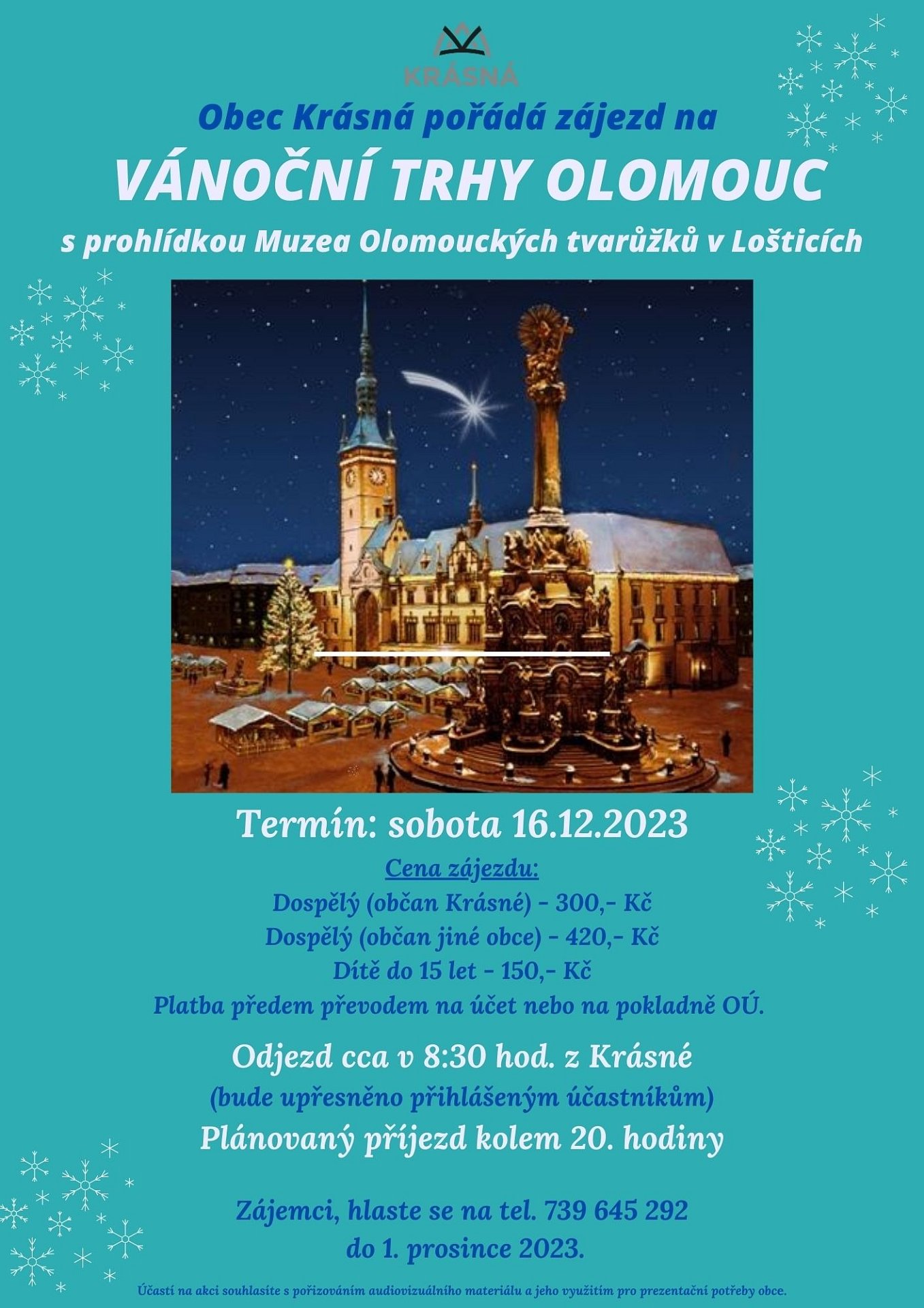 na obecní zájezd na Vánoční trhy Olomouc s prohlídkou Muzea Olomouckých tvarůžků v Lošticích se z důvodu nemoci uvolnilo 5 míst!