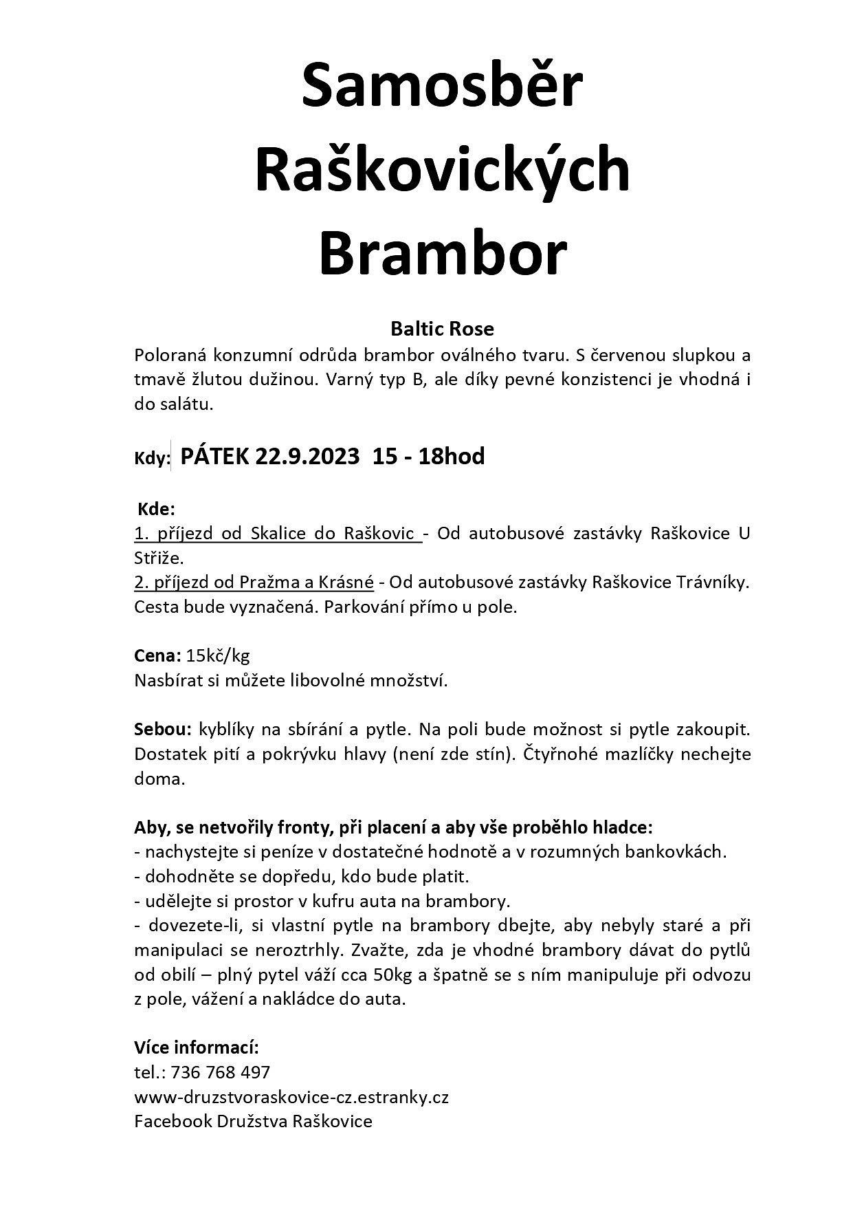 již tuto sobotu 7.10.2023 od 9 do 11 hodin si můžete opět nasbírat brambory v Družstvu Raškovice.
