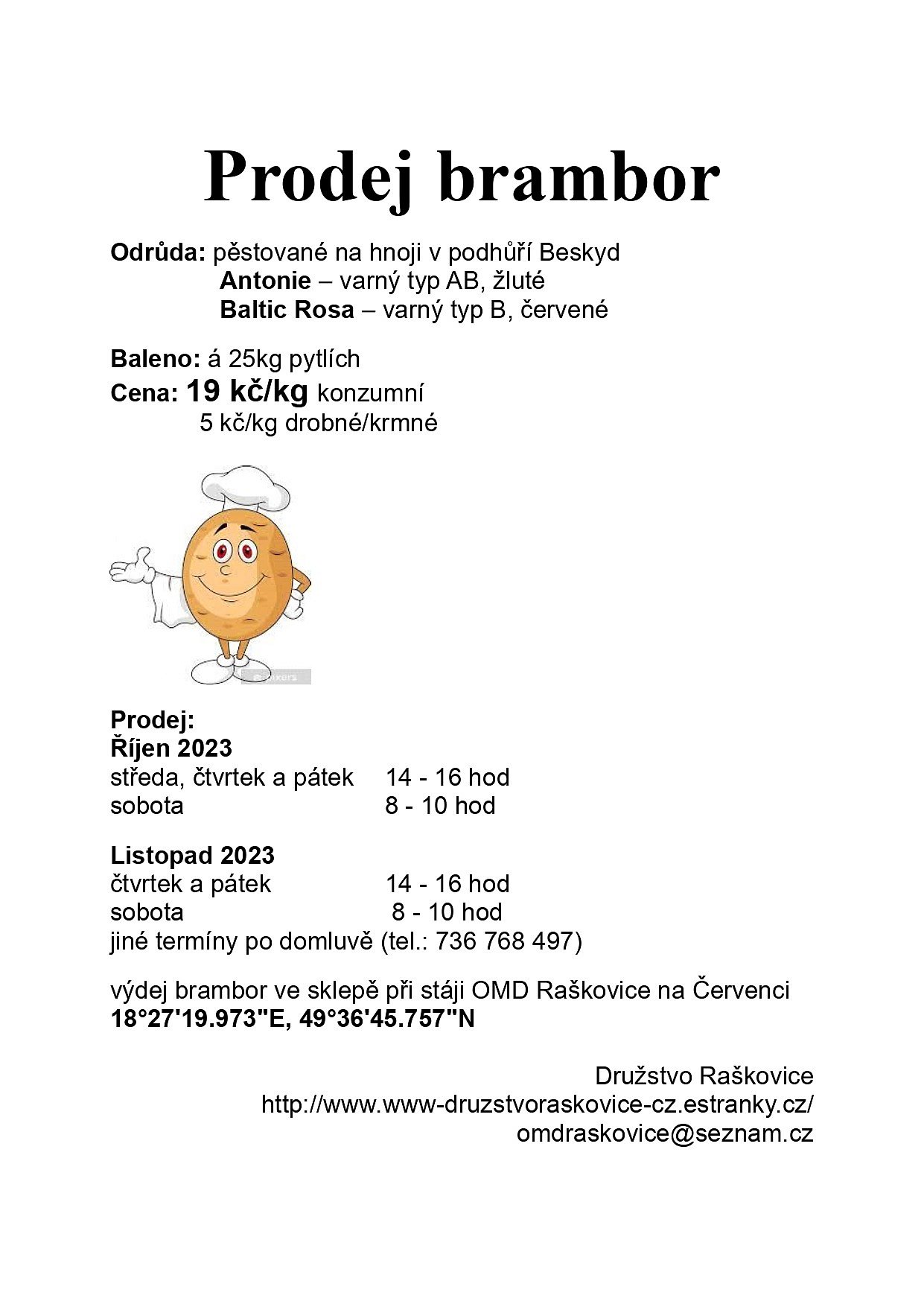 v říjnu a listopadu si stále můžete koupit brambory z Družstva Raškovice.